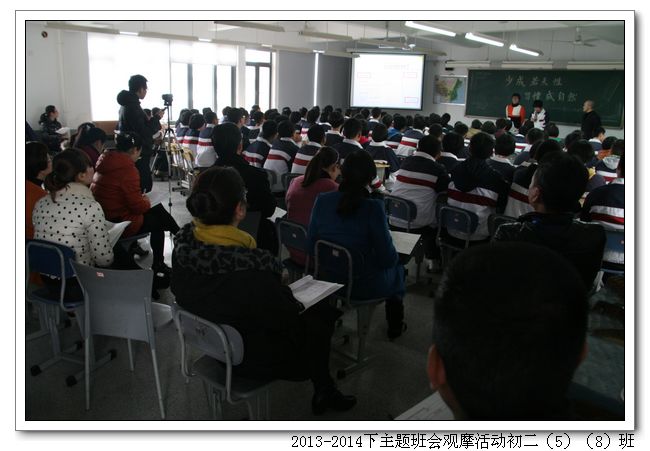 3月10日下午,我校组织开展了主题班会观摩活动,本次活动的主题是“培养良好习惯” ;承办班级为初二(5)班、初二(8)班、高一(3)班、高一(4)班(班主任马耀新、黄鑫、邱琼、林海莺老师)。全体年段长、班主任参加观摩。学校领导俞继圣校长、朱之琳副校长、周啸翔副校长等参加了观摩。