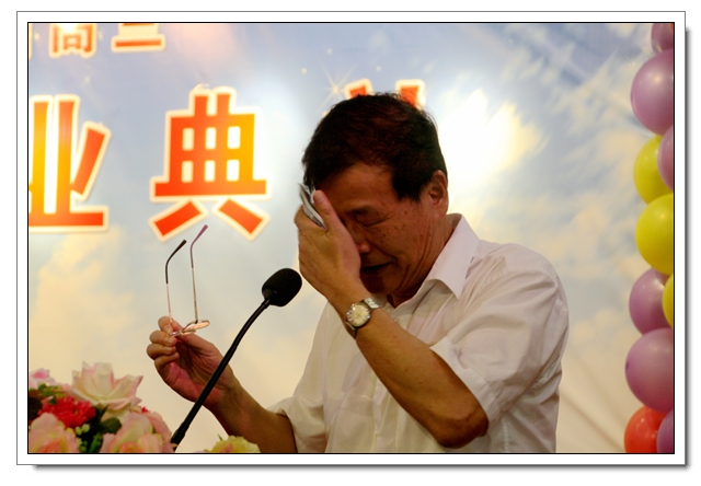 理科班“长冠王”魏名翔向校长献花,他的姐姐也是文博2012届高三毕业生