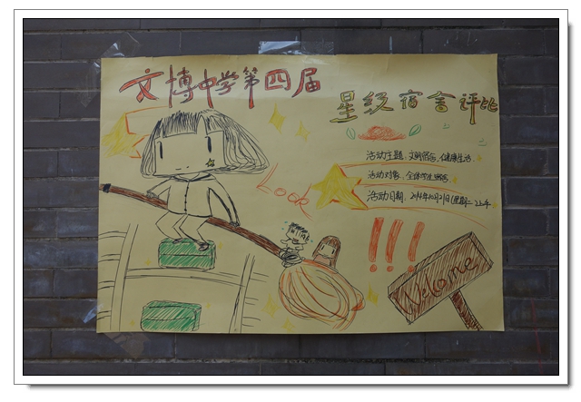 为了培养学生良好的生活习惯,增强学生的审美观念和团结协助的意识、提高内务质量、美化宿舍环境,营造良好的宿舍氛围,学校在10月份开展以“文明宿舍,健康生活”为主题的星级宿舍评比活动。