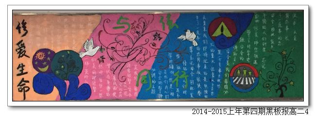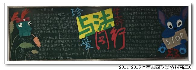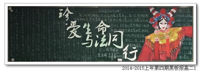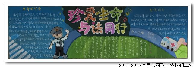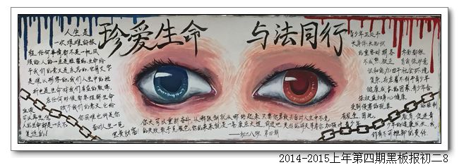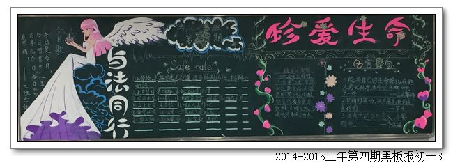 四、2014-2015学年上学期第四期黑板报《珍爱生命,与法同行》优秀板报: