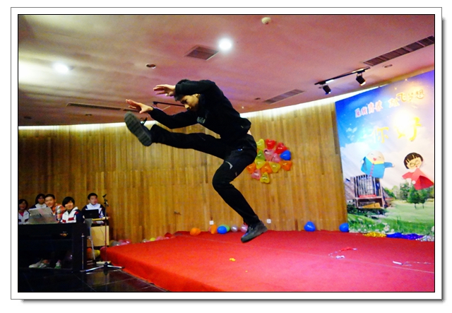 文艺演出在集体舞《小苹果》的欢快舞步中拉开了帷幕。此后,精彩的节目轮番呈现在观众面前,动静结合、雅俗共享,有感人的合唱《父亲》、《梦想纪念日》、妙趣横生的小品《西游记后传》,精彩的武术表演、热烈劲爆的街舞《Blackkist》、年段老师小合唱《相亲相爱》,也有古色古香的古筝独奏,小提琴与长笛合奏的天籁之音《花好月圆》,钢琴演奏《星空》,吉它自弹自唱《平凡之路》。另外,活动中还穿插了有趣的小活动,师生的欢声笑语响彻全场。