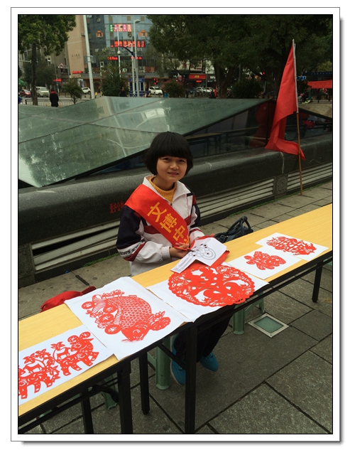 根据《共青团福州市教育局委员会关于开展“手拉手,文明路上一起走”主题志愿者服务活动的通知》精神,我校与市直院校城西片区学校于2015年1月31日共同开展志愿者服务活动。活动中各校学生各显身手,写春联;义务剪发;制作手工花等等。我校初二(6)班乐海燕同学也在现场展示了剪纸的技能,并无偿赠送给辖区居民。