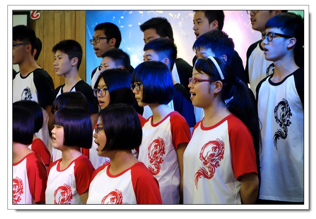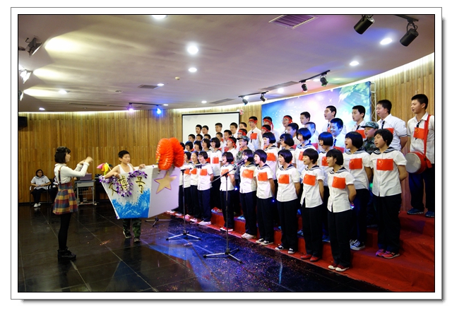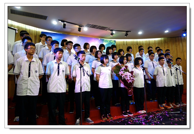 四个年段必唱曲目分别是《中学时代》、《共青团员之歌》、《光荣与梦想》、《中国军魂》。各班在动作编排、服装设计、歌曲演唱方面都很用心,给人以视觉和听觉的享受。值得一提的是,李芸芸、龙连城、陈晓宁三位老师与同学们同台演唱。高一2班的同学们借一首《父亲》向班主任谢成鋆表达了谢意,并敬谢了鲜花。美妙的音符承载着学子们的梦想,回荡在会议中心,也暖暖地流进你我的心中。