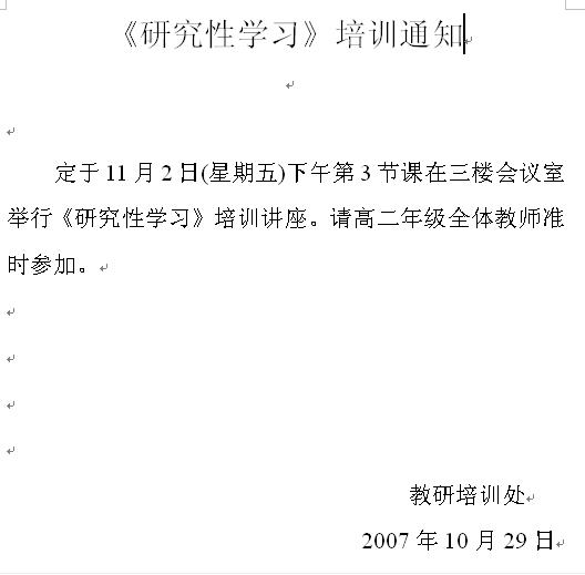<<研究性学习>>培训通知