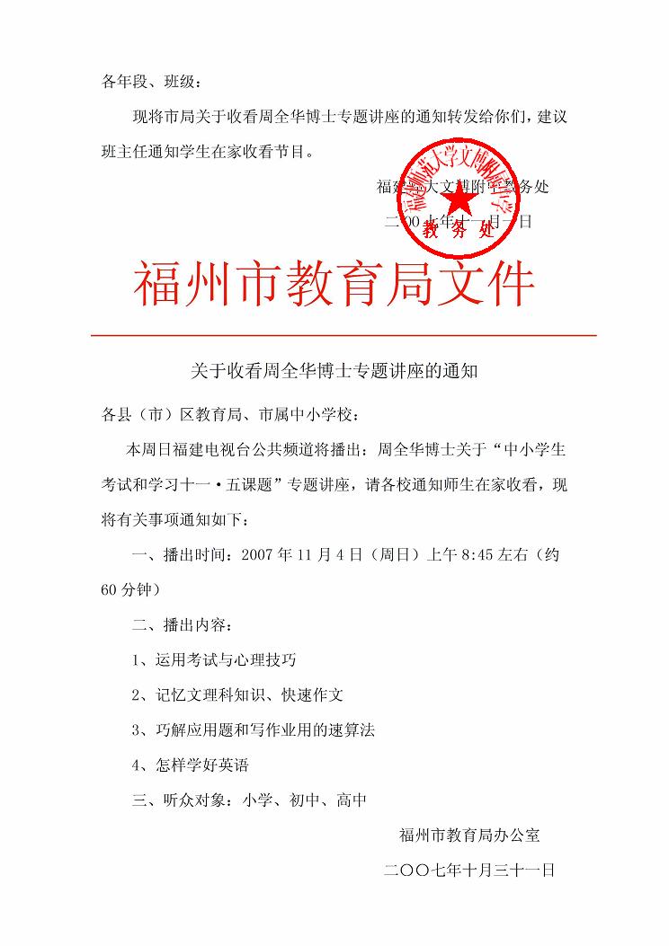 周华全博士讲座通知