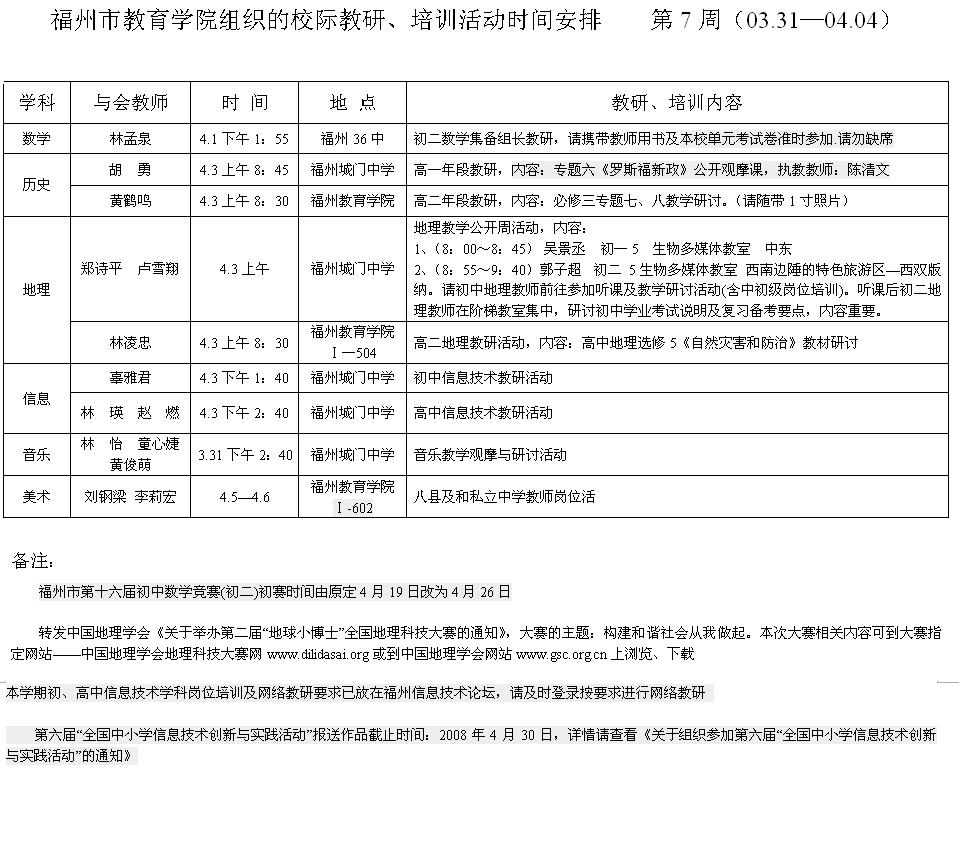 第7周市教研活动安排