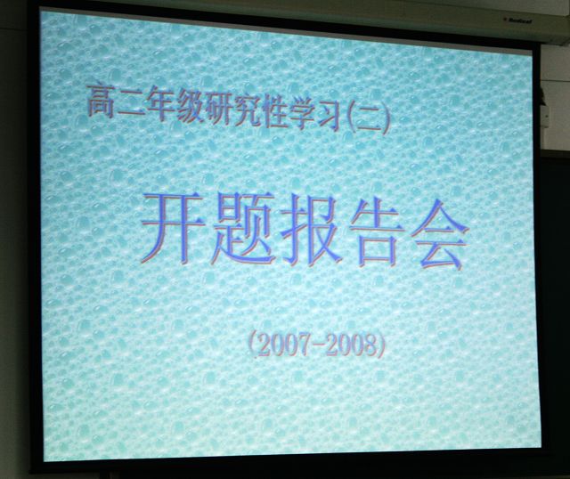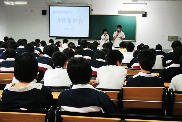 有了第一次研究性学习的经验,同学们研究课题的选择更显价值性,对研究过程更加熟稔,对研究目的也更加明确。开题报告会的过程严谨有序,同学们认真听取了其他同学的课题内容,其中也不乏欢声笑语,使开题报告会生机盎然。各小组组长给大家带来了许多新奇有趣的课题,“古埃及金字塔之谜”让我们领略到了神秘的未知疑团;“中英语法差异的探究”让英语的学习过程又多了一层趣味;“上帝真的存在吗”以富有寓意的图片和故事引起大家的好奇和深思;“鞋文化的探究”展示了一个随处可见、却缺少关注的文化世界;“魔术”的奇幻和瑰丽让我们不禁期待结题时的精彩展示;“网络游戏如此受欢迎的原因”让我们在“好玩”、“有意思”的背后看到了深深的担忧。指导老师们对这些课题提出了许多指导性的有益的问题,使同学们受益匪浅。高一同学的研究性学习成果给大家带来了欢笑和轻松。