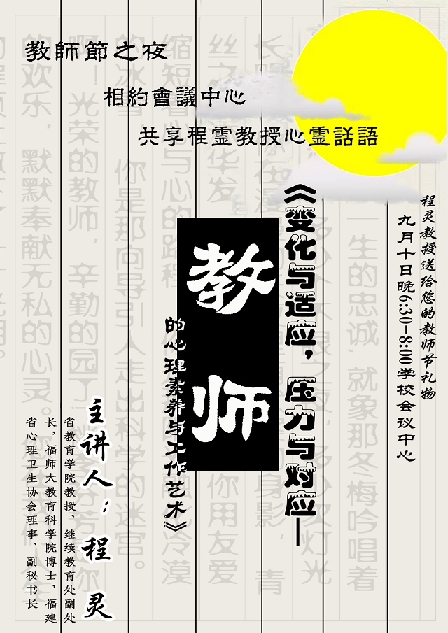全体课任教师请准时观摩讲座。
