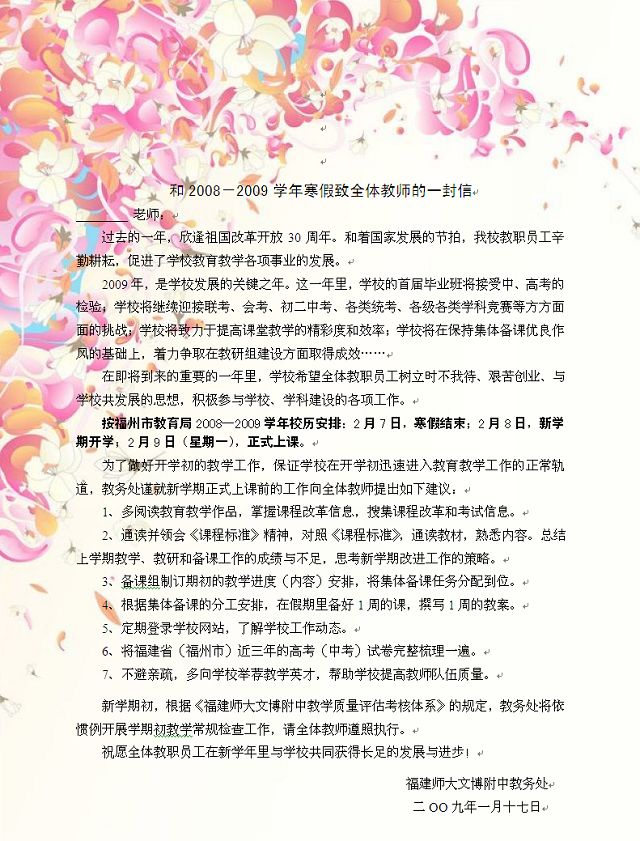 寒假致教职员工的信