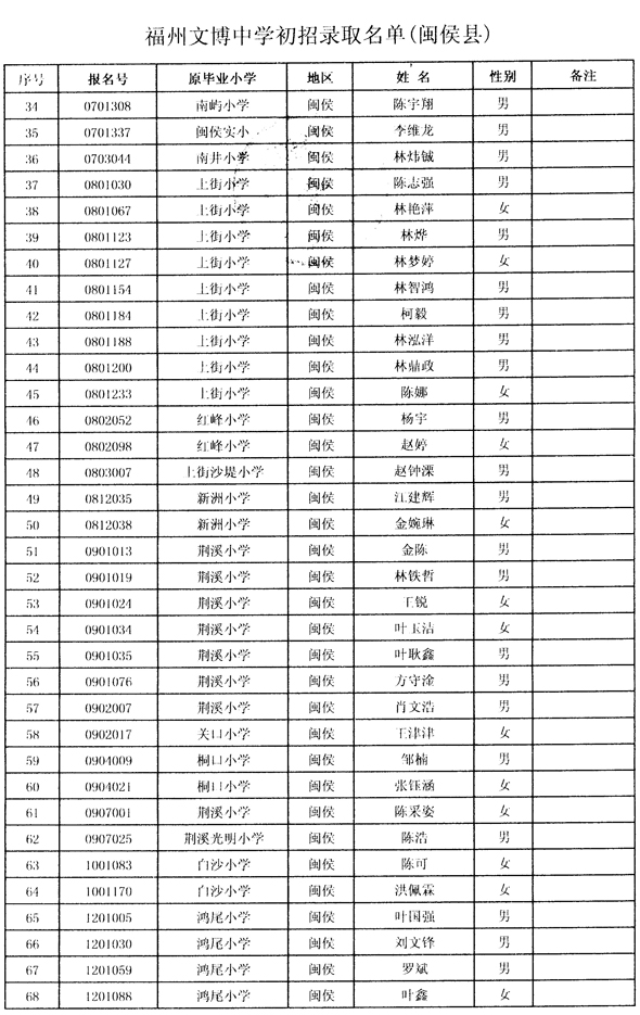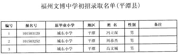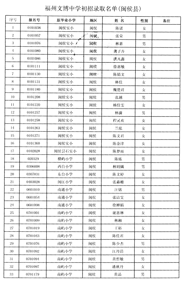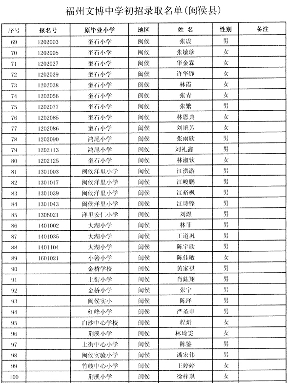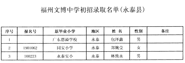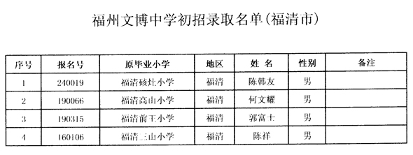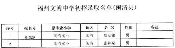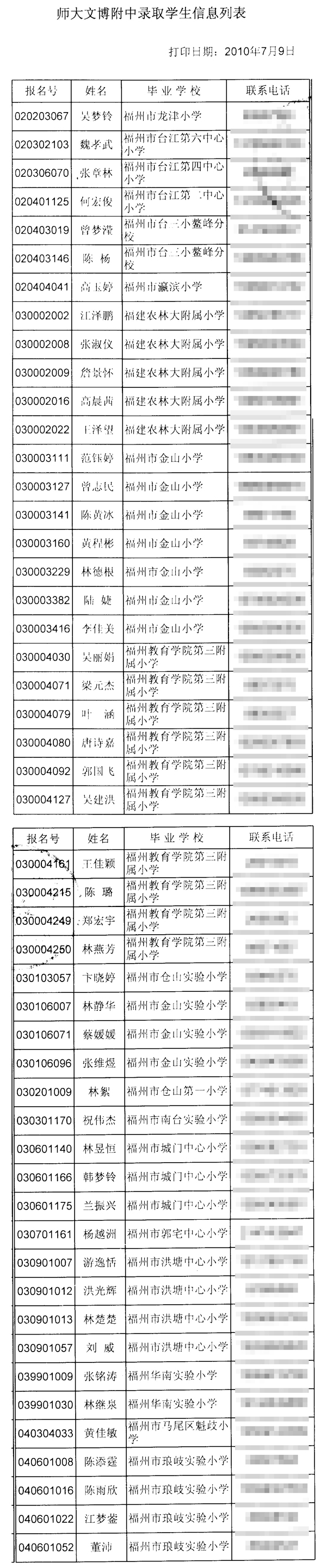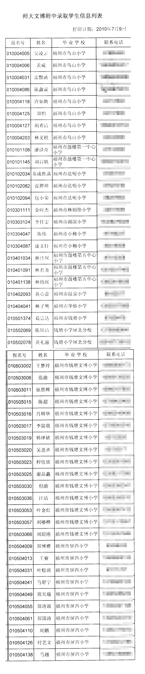 文博中学2010秋季初一新生名单,经福州市教育局批准,现予公布。