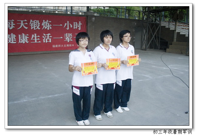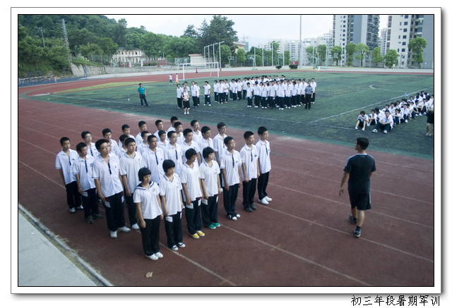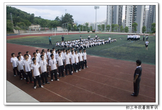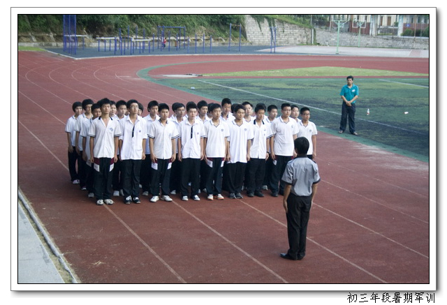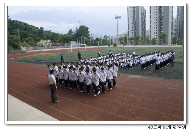 新学期伊始,文博中学在2011届初三年段认真开展了入学前教育和行为规范训练,在学生报到时,学校进行了全天的军训,军训内容包括队列训练及班级队列编排、作息时间及作息习惯、日常行为规范等方面的集中规范训练。下午又召开了学生军训的成果展示,八位教官一声令下,各班学员精神抖擞,步伐整齐,动作到位。在整个训练过程中做到了人员到位,时间到位,场地到位,训练到位,措施到位,检查到位,训练活动真正落到了实处,对促进学生良好行为习惯的养成起到了极大的作用。为学生良好行为习惯的养成开了一个好头,也为学生的发展打好了基础,起到了预期的良好效果。