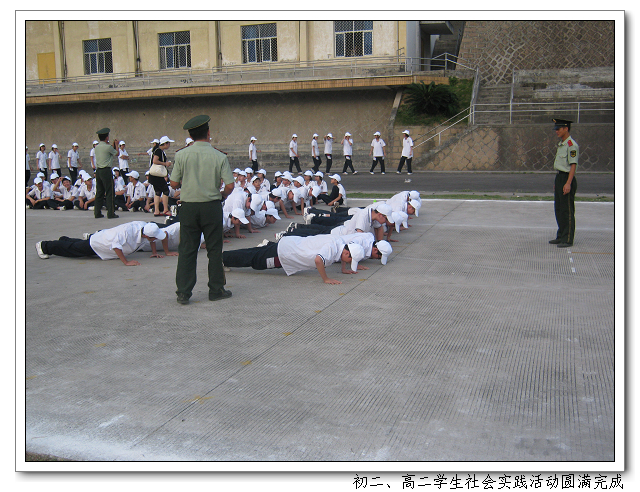 8月25日至8月30日,我校组织初二、高二全体学生在武警福建部队直属大队进行了为期五天的社会实践活动。