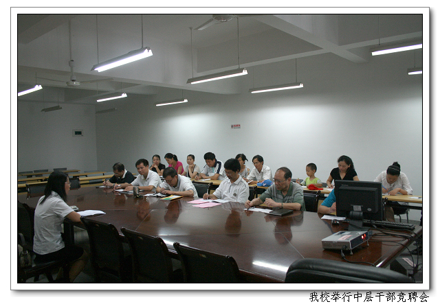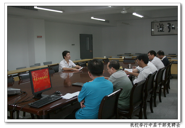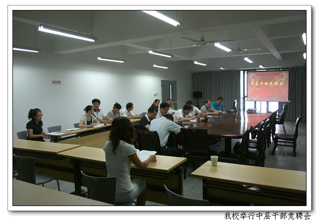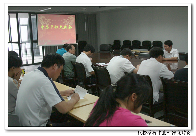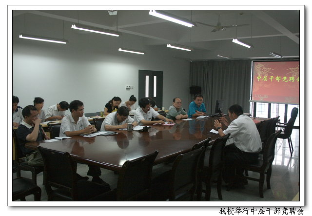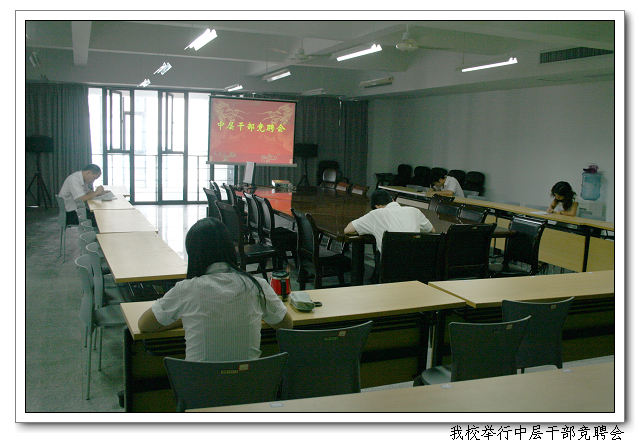 9月4日上午8:00,五楼会议室,学校中层干部竞聘会如期举行。尤江龙等六名老师报名参加了教研、后勤、校务三个处室副主任的竞聘活动。经过笔试之后,参加竞聘的六位老师分别就各自竞聘岗位发表演讲,阐述了对各口工作的设想。精彩的演讲辞赢得在场20位评委的阵阵掌声。