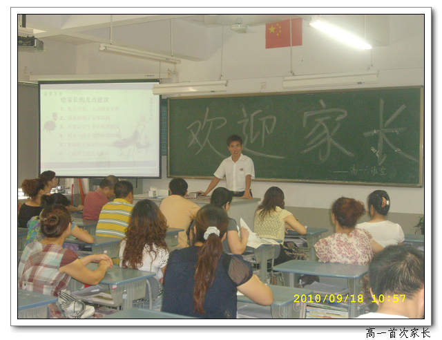 9月18日上午九点,我校翔越级(高中2010级)全体学生家长、教师及校领导共三百八十余人会聚在校会议中心,召开以“我们为理想而来”为主题,以“了解孩子优缺点,明确孩子成长需求;为孩子确立目标、树立理想。”为目的的首次家长会。