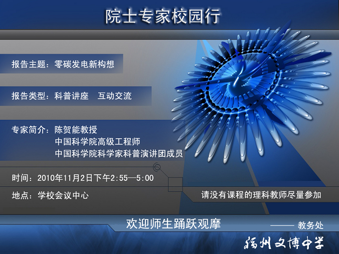 欢迎观摩“院士专家校园行”科普报告会
