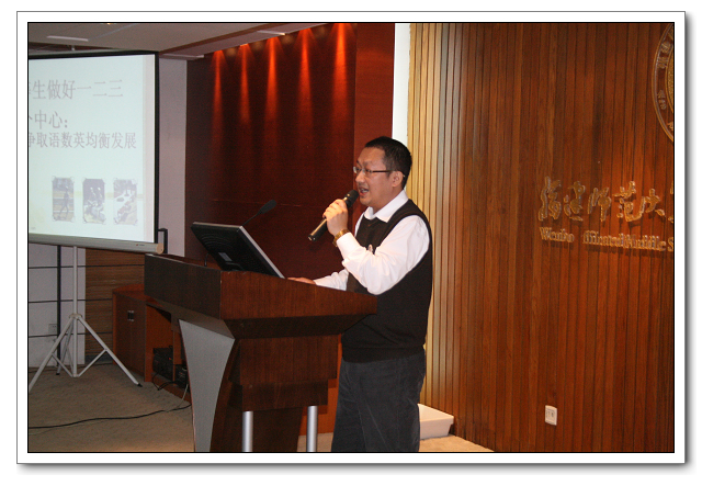 年段长分析了半期考的整体情况,明确下个阶段的培养目标,希望全体优生能够缩小分差,中等生语数英均衡发展,学困生优势科目找到自信。