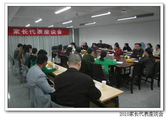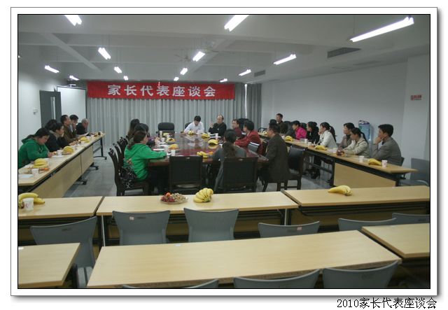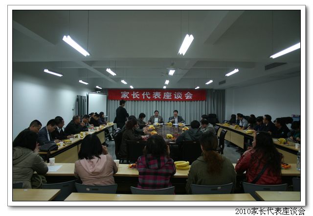 2010年11月19日(星期五)下午,11月20日(星期六)上午,我校分别召开了初一、高一学生家长代表座谈会。座谈会由周啸翔副校长主持,学校领导参加了此次座谈会。会上,俞继圣校长首先简单介绍了学校的情况;对孩子教育问题、家校沟通等方面提出了自己的看法。随后周副校长强调了学校召开此次座谈会的想法和宗旨:“想听听家长们对学校管理的真实意见”。在周副校长真诚的话语中,家长们争先发言,气氛十分热烈。家长们充分肯定了学校近几年的工作成绩,从不同角度发表了自己的看法,在场的校领导也与家长们进行了互动交流,一一回答了家长们提出的问题。