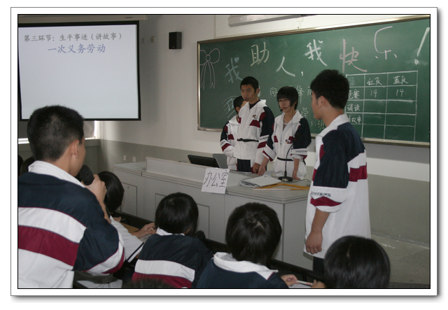这次活动的开课班级有初一(5)班、初二(3)班、高一(8)班、高二(2)班。初中的主题是:“向雷锋同志学习”,高中的主题是:“好习惯,益终身”。