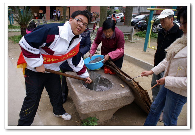 本次活动主要分为三大块:普及消防知识;二是走进孤寡老人的家,陪老人聊聊天、说说话,帮助行动不便的老人们做卫生;三是义务维护小区周边环境卫生。期间我们还有幸帮助老奶奶们磨清明果的黑豆馅,身强体壮的男生积极性很高地承担了这一任务,为老奶奶们碾了大半盆黑豆,在一旁的叔叔婶婶们笑得合不拢嘴。这次活动看到了雷锋同志的精神永驻同学们心中,永远的流传下去。