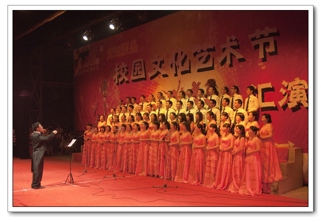 这次校园文化艺术节,内部丰富、形式多样。有“歌唱祖国、歌唱党”的班班有歌声比赛;有“我的家、我做主”的学生宿舍设计评比;有“党旗飘扬”班班书法、美术作品展及“纯真的叙述”剪纸艺术作品展;有诗歌朗诵、演讲比赛。尤其在4月30日的艺术节文艺汇演晚会上,师生同台“才艺大比拼”,自编自导的“时装秀”、魅力魔术、激情街舞等节目,给全校师生呈上一台丰盛的视觉盛宴。全校13个学生社团百花齐放,开展活力四射的文艺活动。45个班级,45支队伍,跨越课堂教学的时空,共同演绎了全面互动、和谐发展的美好未来。