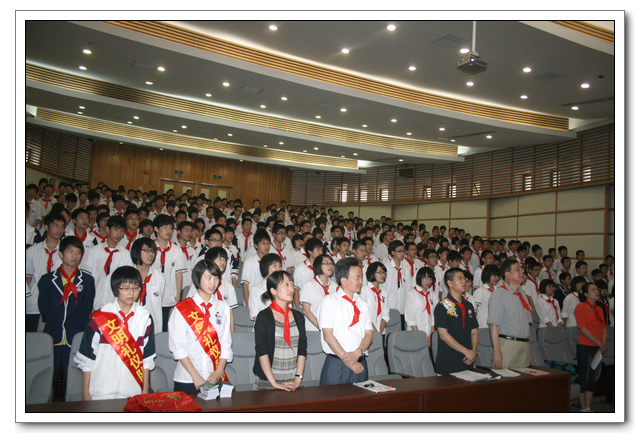 5月26日下午,初二年段全体同学在校会议中心,召开 “告别美好童年,演绎百味人生” ——初二年段少先队员退队暨新团员入团仪式。新一批入团积极分子经过一段时间的培训和考核,光荣地成为了共青团的一份子。在这一天,全体同学摘下胸前的红领巾,踏入了朝气蓬勃的青年时代,这一天对初二全体同学来说是值得纪念的日子,相信他们定会扛起肩上的重任,沿着这条路,继续走下去!
