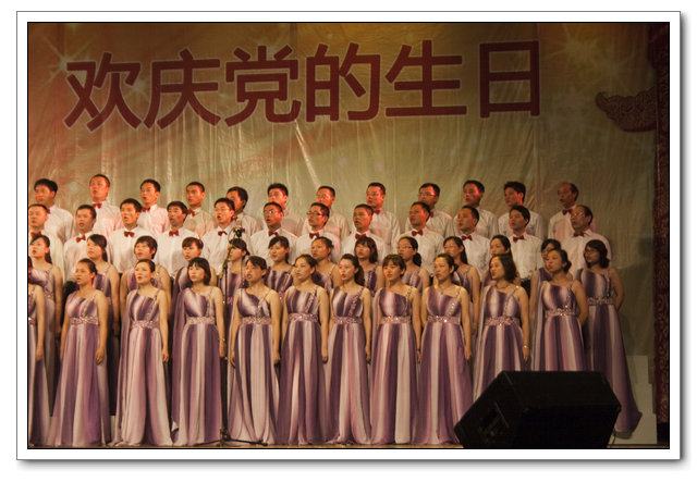大会在庄严的《国际歌》声中结束。随后,福州市教育系统庆祝中国共产党成立90周年合唱比赛拉开序幕,市属院校进入决赛的8支代表队演唱了《没有共产党就没有新中国》、《在灿烂阳光下》、《走向复兴》等歌曲。由我校党支部林仰仙书记带领的我校党员合唱队参加了民办学校合唱团的演出。民办校合唱团获得了总分三等奖的成绩。