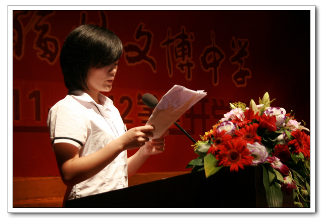 接着,学校对2011年入读我校的初、高一逾百名优秀生颁发入学奖励,对2010—2011学年成绩优异的同学颁发了学年奖学金。2010届高三(5)班张虹同学代表毕业生讲话,表达了对母校的感恩之情。获得学年奖学金的新高三年段陈倩倩同学、新初三年段翁潇睿同学代表高、初三毕业班同学讲话:表达了对学校董事会的奖励和帮助的感恩之情,全体毕业班同学将争分夺秒,科学安排,为2012届高中考再创辉煌努力奋斗。