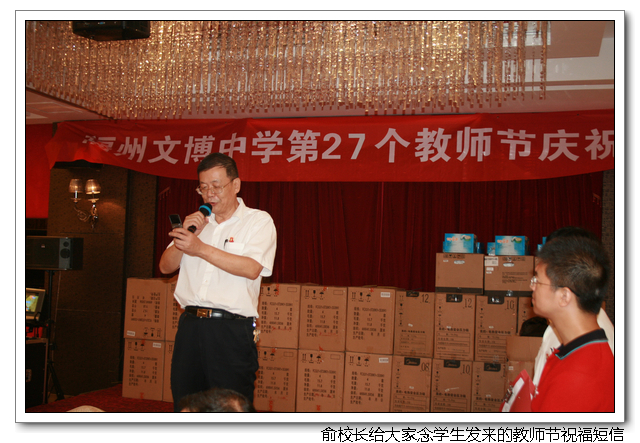 接着,俞继圣校长和应我校邀请参加宴会的等公司领导,一起为学年各类校先进,吴晓梅、陈成云、余光亮等39名老师颁发了荣誉证书。