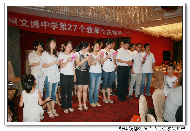 9月9日晚,我校第二十七个教师节庆祝晚会隆重举行。晚会由颁奖典礼和联欢晚宴两个部分组成。