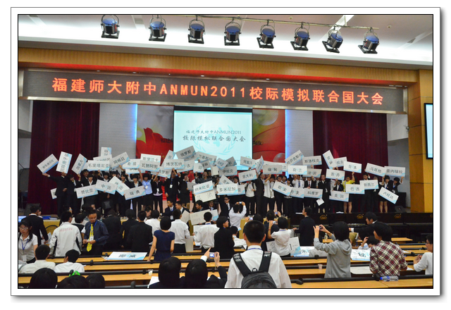 我校模拟联合国社团受福建师大附中邀请于10月4日至10月6日在师大附中参与了福建师大附中ANMUN2011校际模拟联合国大会。(参会学校包括福州所有一类校及南平一中)