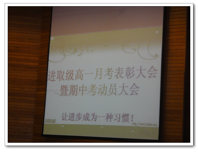 10月24日下午第4节,进取级高一全体同学齐集在校会议中心二楼隆重召开“第一次月考表彰暨期中考动员大会”,主题为“让进步成为一种习惯!”。