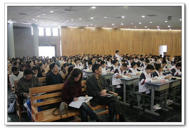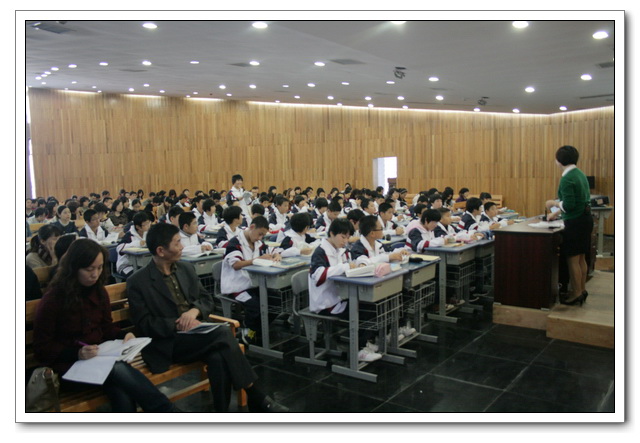 参加本次听课的有福州教育学院教研员林科顺老师、王玫老师, 福州市名师工作室六位成员以及市区中学330多位教师。