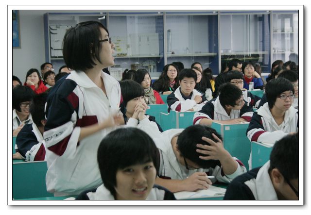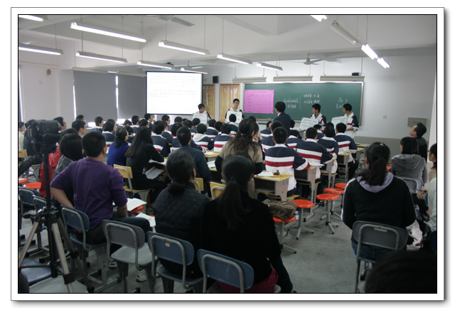 11月24日上午,我校政治组初、高中举行了市级开放周教研、岗培公开课活动。活动吸引了众多兄弟校同行前来观摩,包括师大附中、福州三中、格致中学、福州高级中学、十八中、华伦中学等近三十所学校的上百名一线教师,市教院教研员杨继红、林颖、张健老师,市学科中心组成员何菁老师等学科带头人也参加了公开课活动。老师们分别听评了初三邓金秀老师精心准备的《理智面对学习压力》和高二连玮老师执教的《做好量的积累,促成事物的质变》公开课。