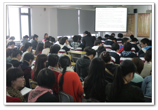 王玉翠老师开设的是阅读课,内容是关于西方艺术的发展简史。主要是通过教师指导、学生阅读及小组探究来提高学生对文章信息的加工和处理能力。王玉翠老师课件制作精美,上课思路清晰,条理清楚。课上学生积极参与,讨论热烈,小组探究得到充分体现。
