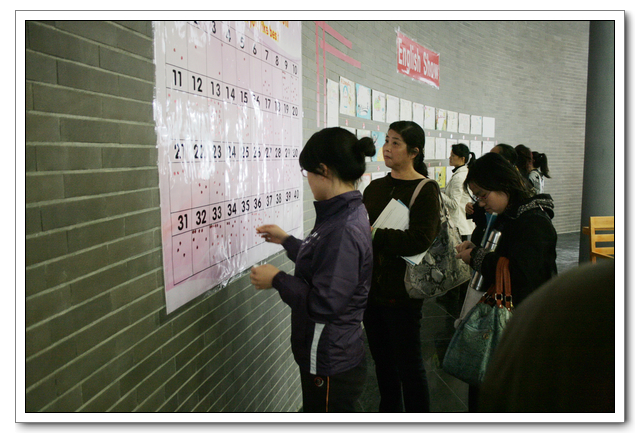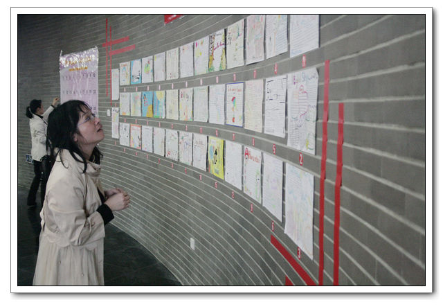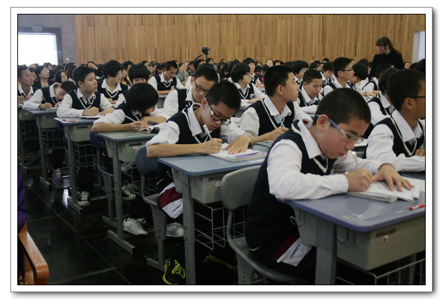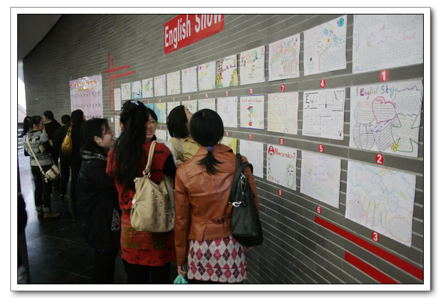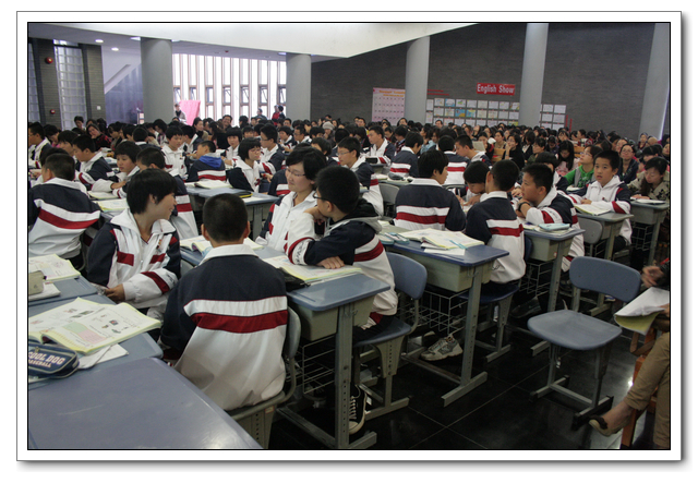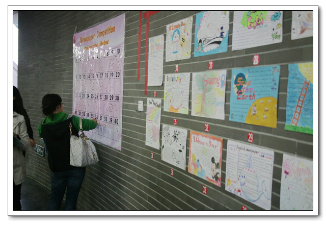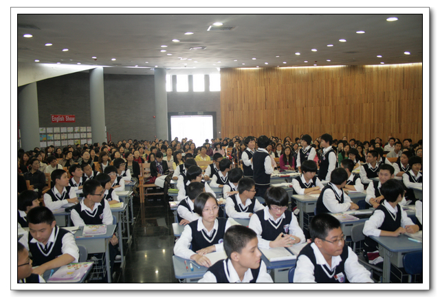 会议中心一楼是我校可容纳人数最多的室内场所。在本次市级教学开放周活动中,初中英语科开设的两节公开研究课都被市教院列入教师岗培活动。鉴于观课人数可能较多,经慎重考虑,我组决定将开设公开课的地点确定在会议中心一楼,并对场所进行了布置。教室后墙展示了学生制作的英语手抄报,很好地体现了我校学生的英语素养,成为当天公开课活动的一个小亮点。活动现场还安排了听课老师评选手抄报的活动,得到了许多同行的乐心参与,也成为当天活动的一个小花絮。