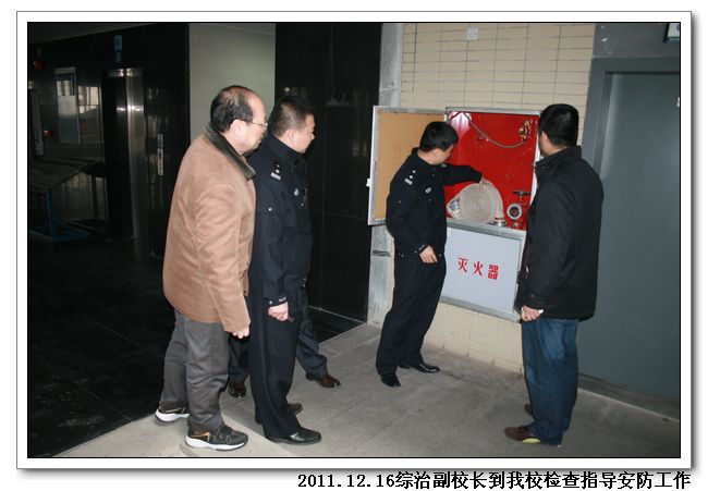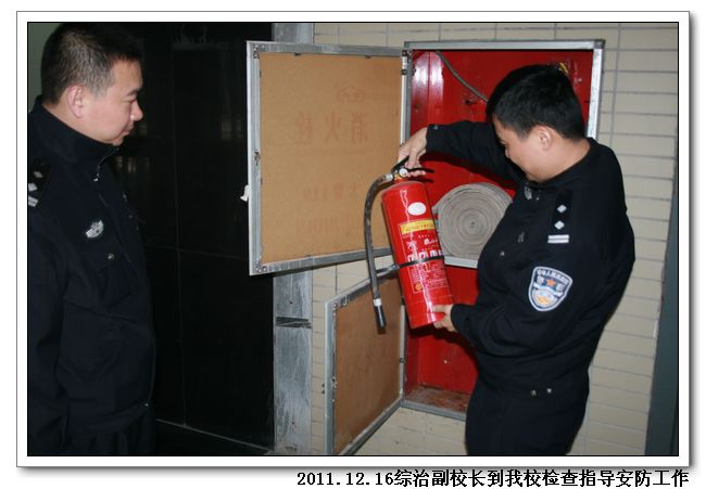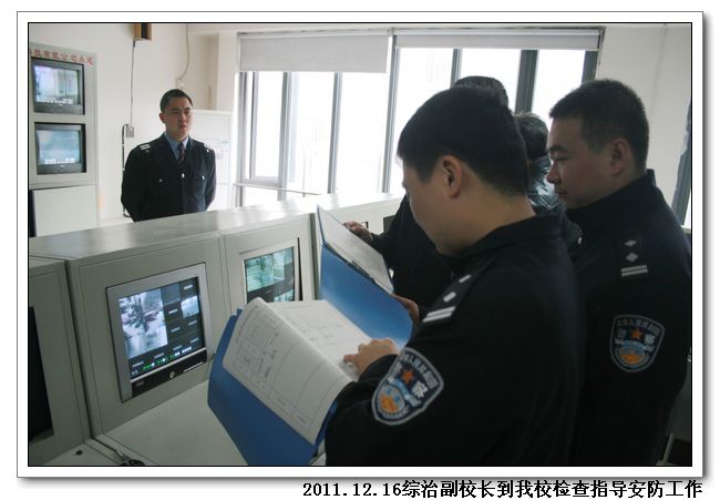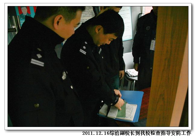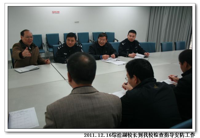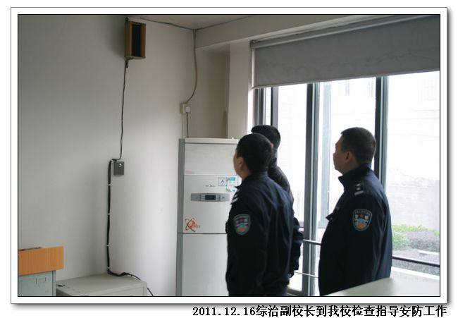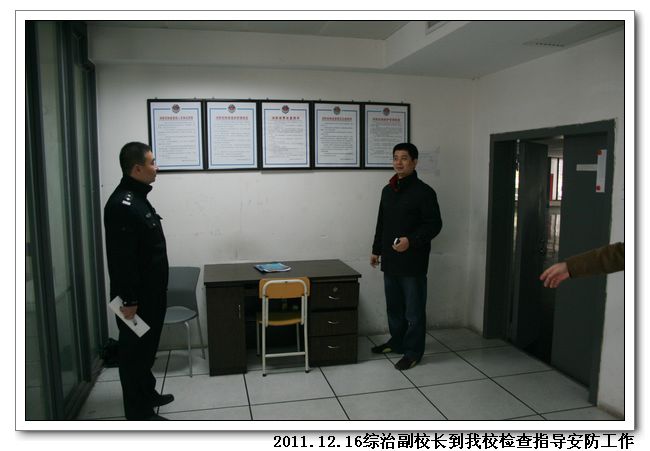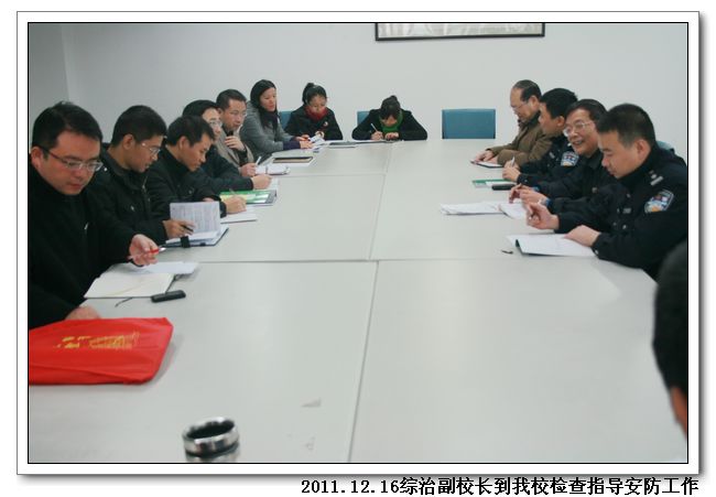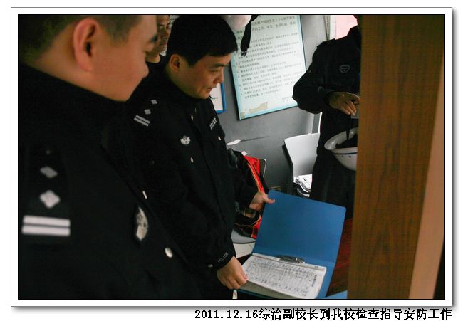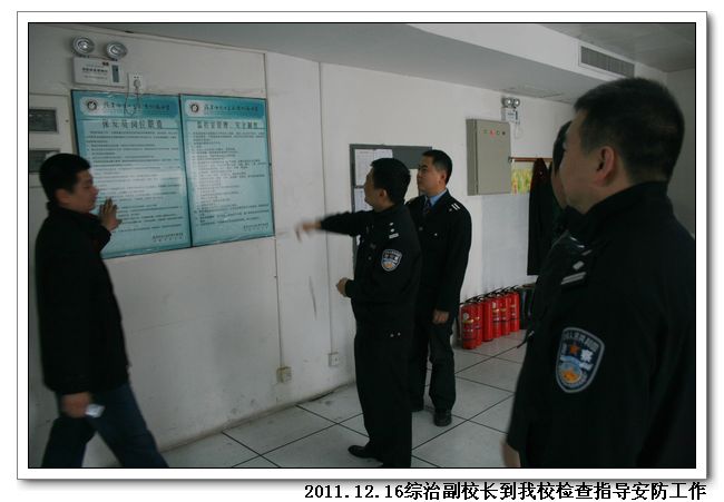 12月16日上午,我校综治副校长洪山派出所副所长王晨东和潘警官到校参加年度安全工作会议,检查并指导我校的安防工作。