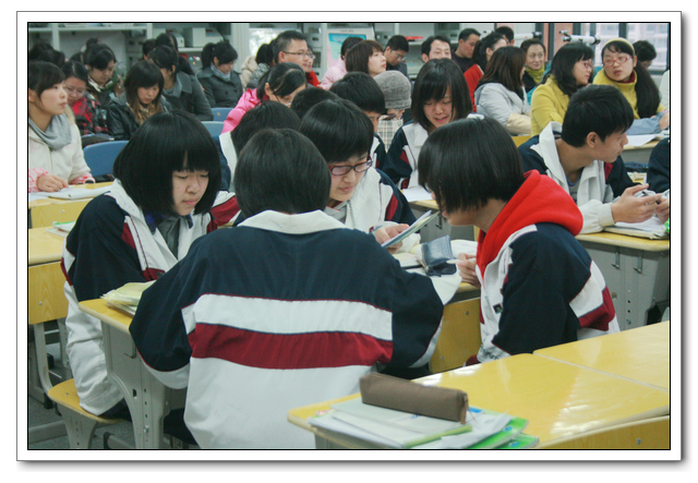 课后,潘老师讲述了教学设想和思路,简明扼要。接着,她和到场听课学习的老师们分享自己的教学经验。大家都对潘老师平时要承担各种公开课、开展培训、讲座,是学校的行政骨干,还能保持优异的教学成绩感到十分钦佩,希望有机会还能听到潘永红老师的公开课。