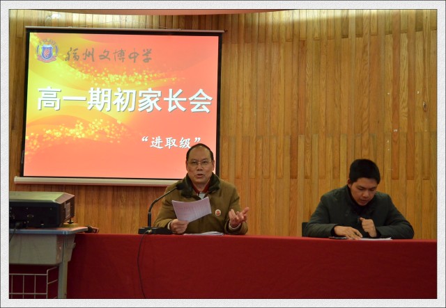 年段长艾老师向家长汇报上学期期末考试情况,宣读了受表彰同学的名单。并从高一年级当前实际出发,从学习习惯、行为规范、心理健康、生活规律等方面提出建议,希望家长能积极配合年段,推动年段进一步发展。