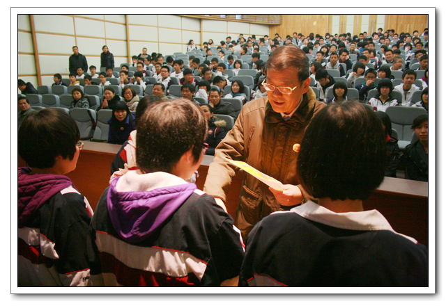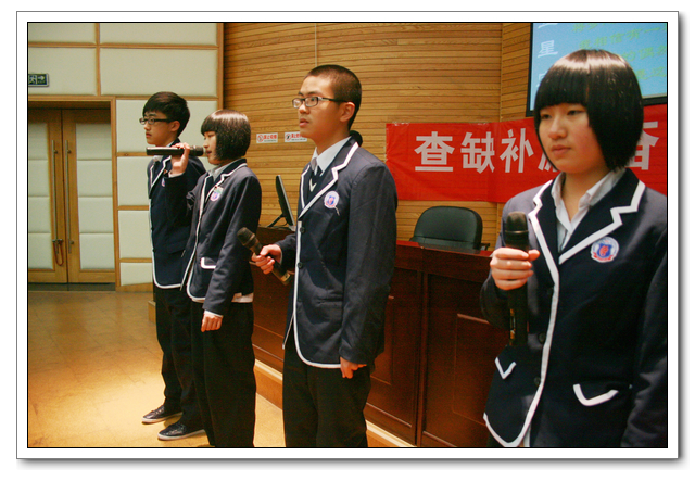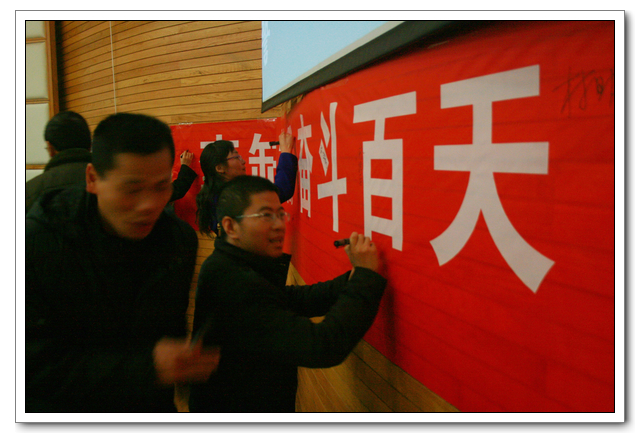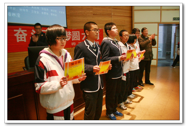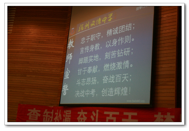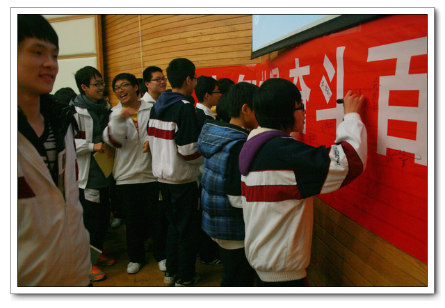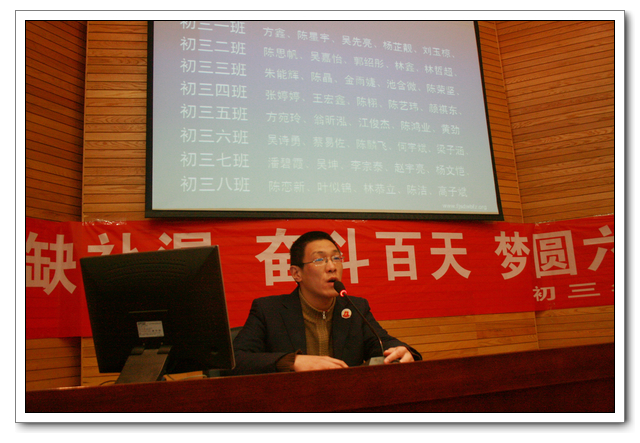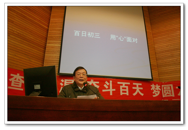 师生们的宣誓更是将誓师大会推向了高潮,字字铿锵有力,那是他们信心十足的真实写照。接下来是俞校长的发言,演讲中不仅让学生们感触良多,更是收获了学习之道:用“心”面对——信心、专心、细心、恒心,四“心”缺一不可。在100天里,把那些看似与学习无关的小事情做好,养成“应试”习惯,互相激励,互相帮助,我们相信,文博2012届初三全体师生定会创造新辉煌!