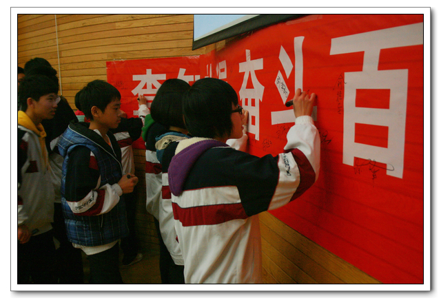 在临近中考的最后百天,2012届初三学生早已整装待发,斗志昂扬!