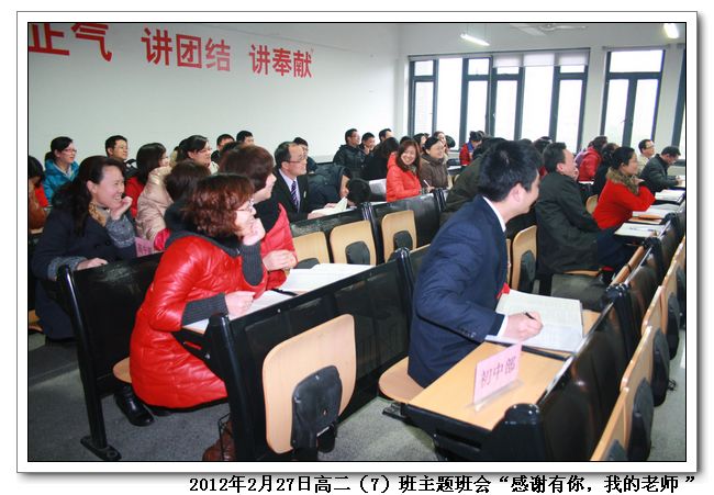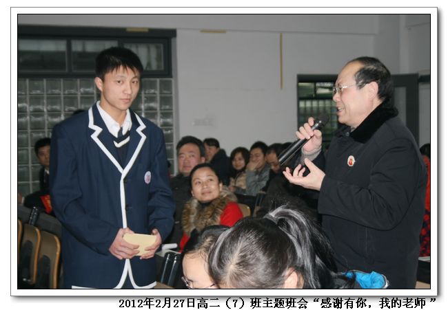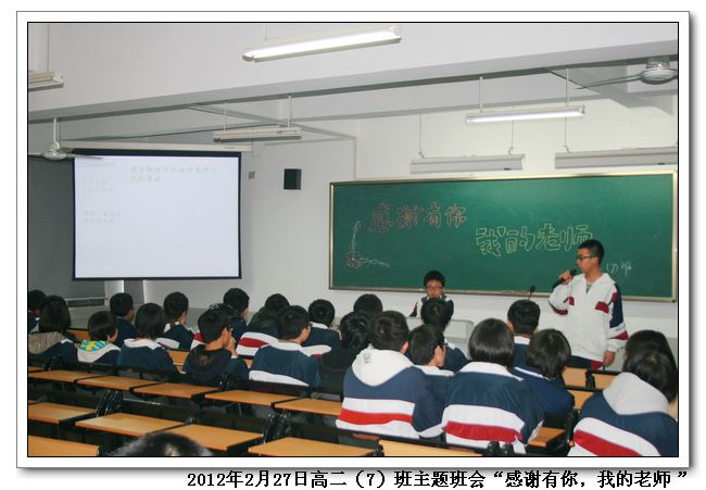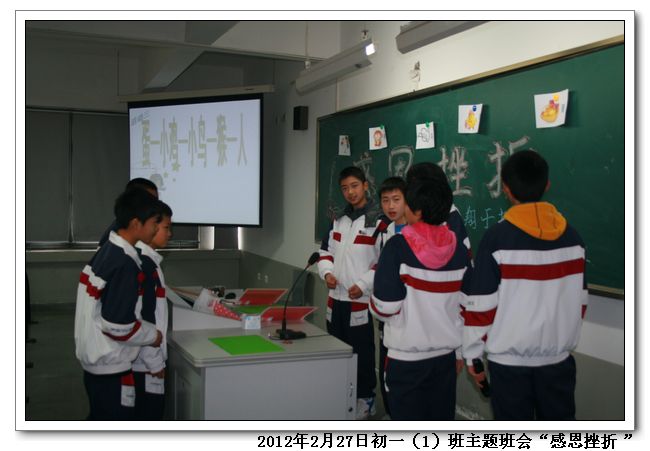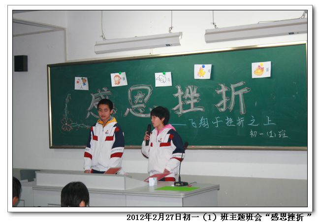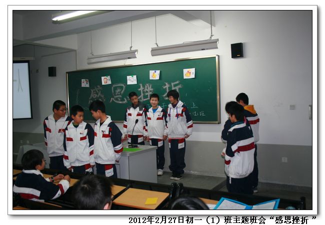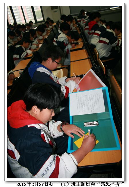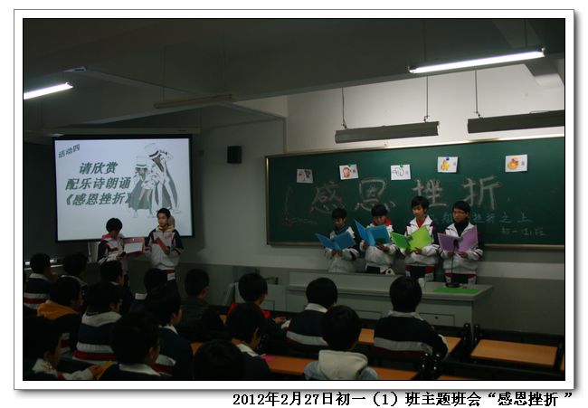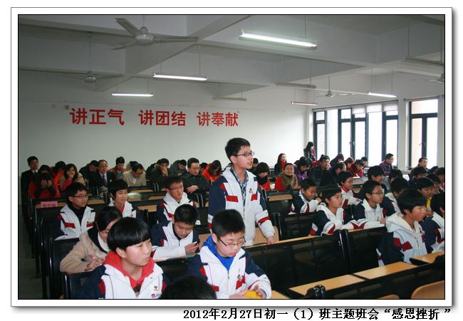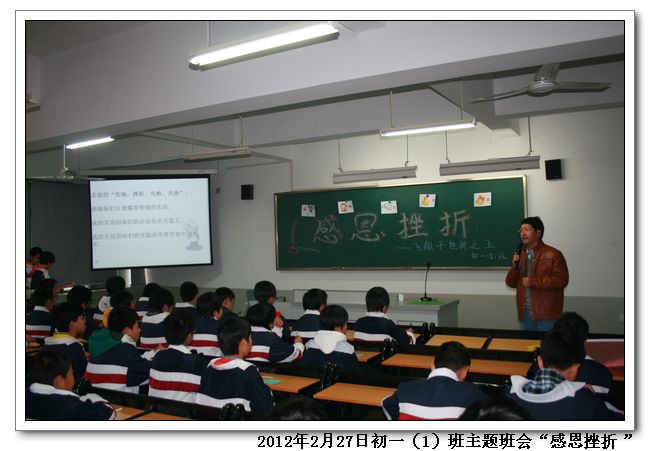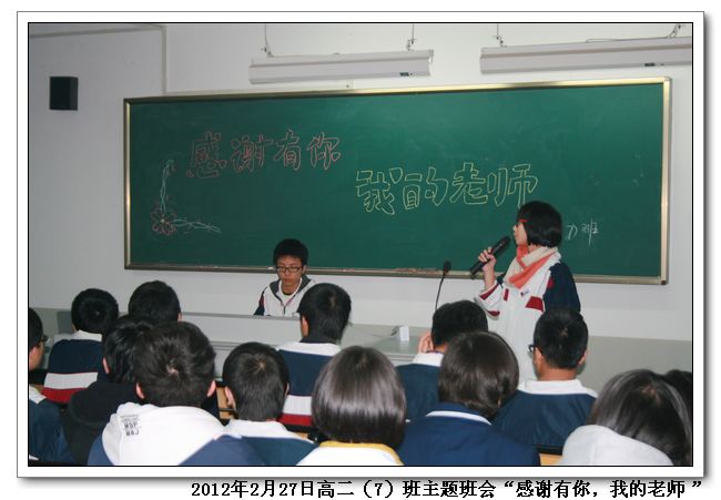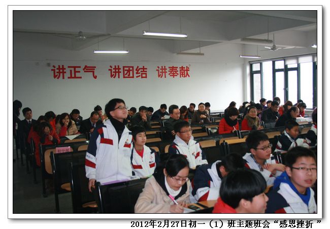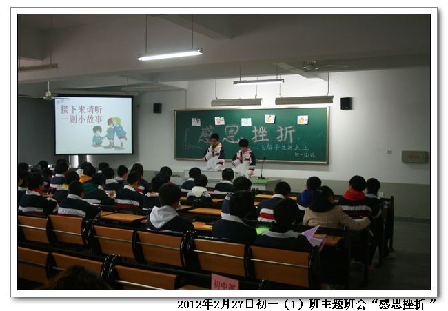 2月27日下午,我校大课教室(1)传来阵阵掌声和喝彩声,原来是初一(1)班和高二(7)班在这里举行了两场别开生面的主题班会。
