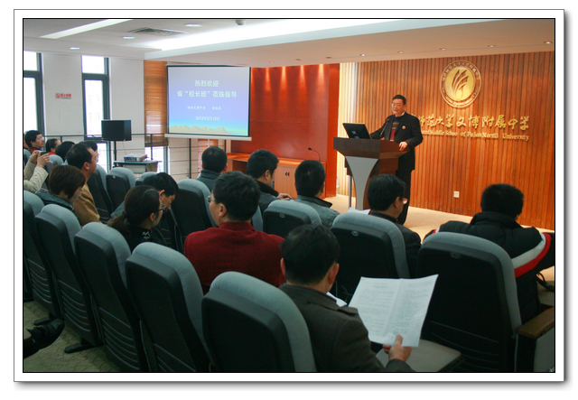 俞继圣校长向培训班作了《学生安全教育和校园管理》的经验介绍,校长们实地察看了我校学生宿舍管理、学校安保监控系统、学校办学设施及学生课余活动情况。