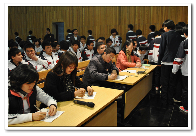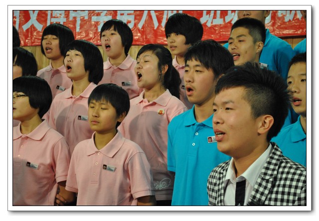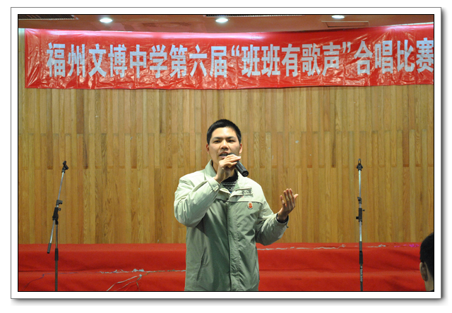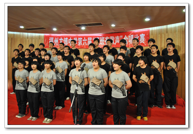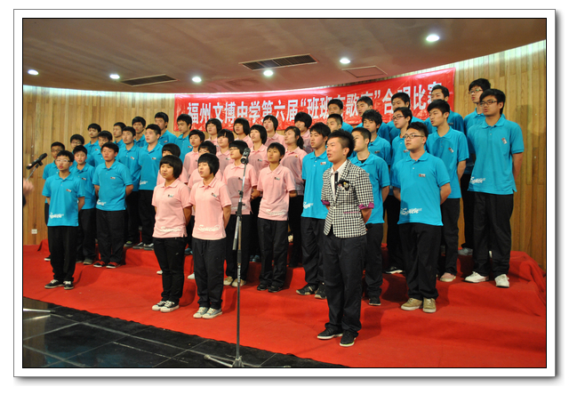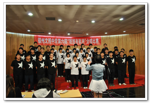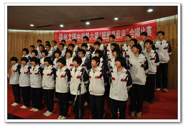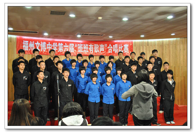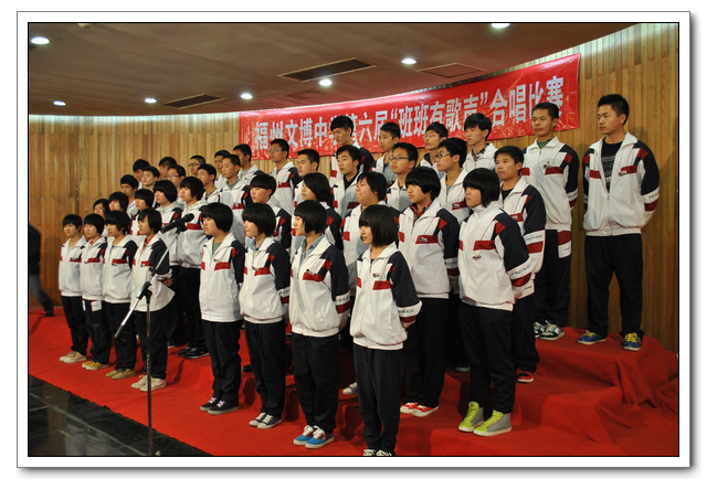 2012年3月12日下午第3、4节课,进取级高一在一楼会议厅举行了他们的第一次合唱比赛,拉开了福州文博中学第六届“班班有歌声”活动的序幕。