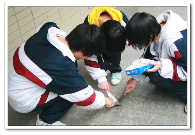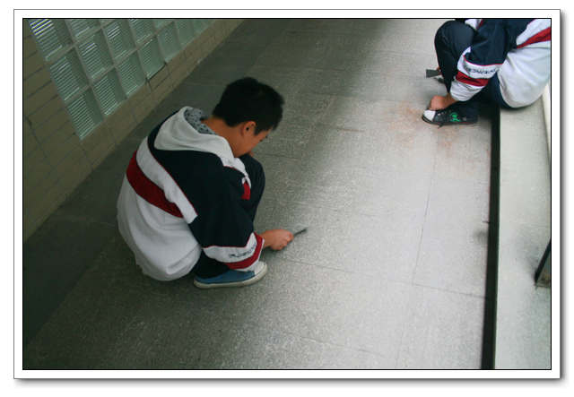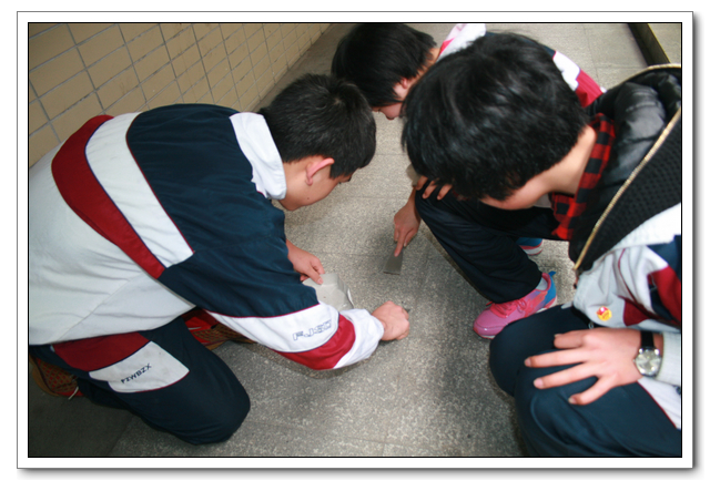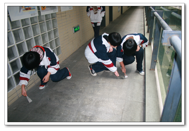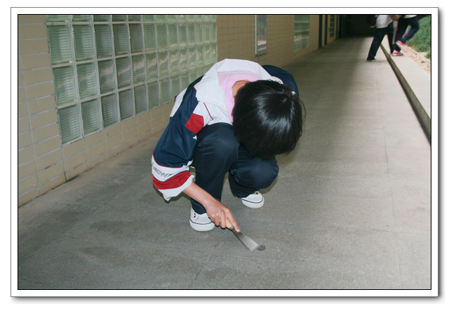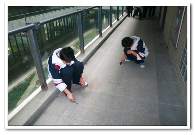 雷锋月系列活动报道二:初中志愿者清理校内口香糖污渍