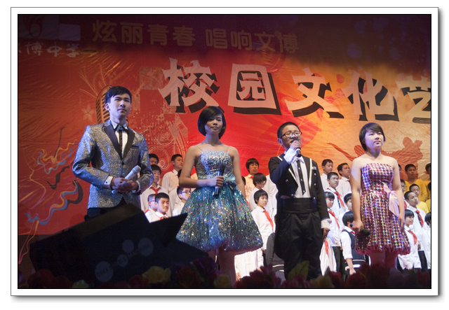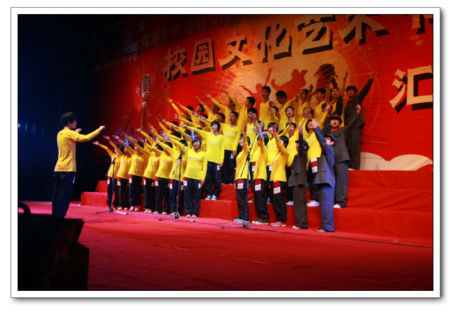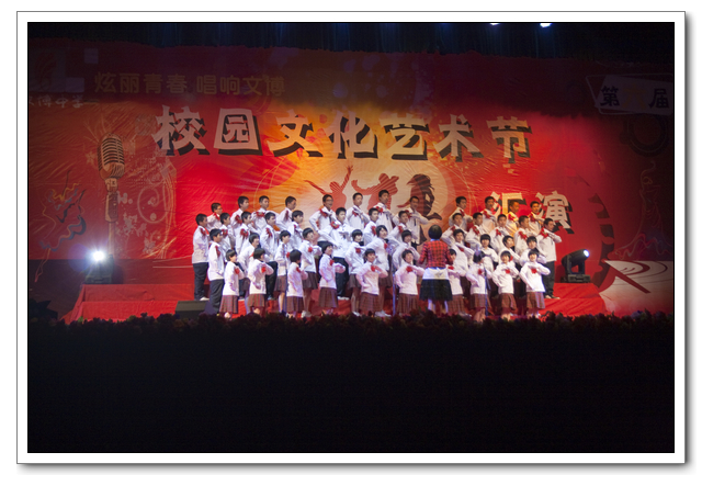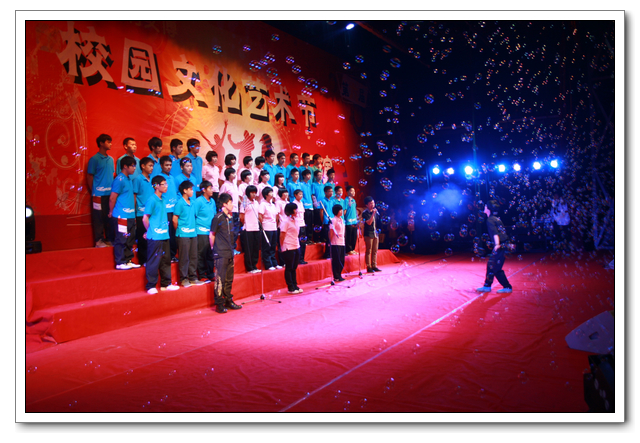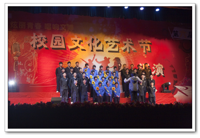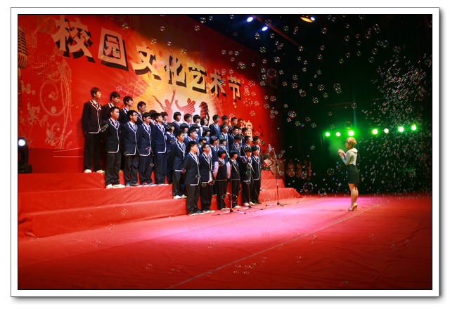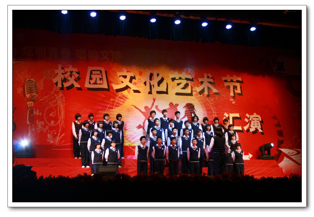 “绚丽青春、唱响文博”第六届校园艺术节活动,历时一个月。3月31日晚,节目汇演暨“班班有歌声”班级合唱颁奖典礼晚会在校操场隆重举行。