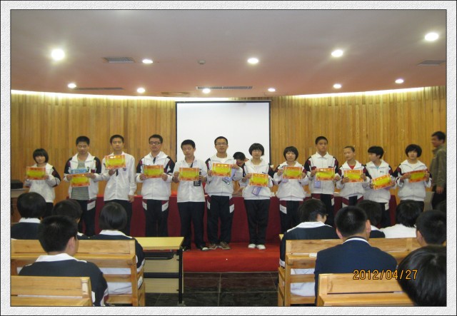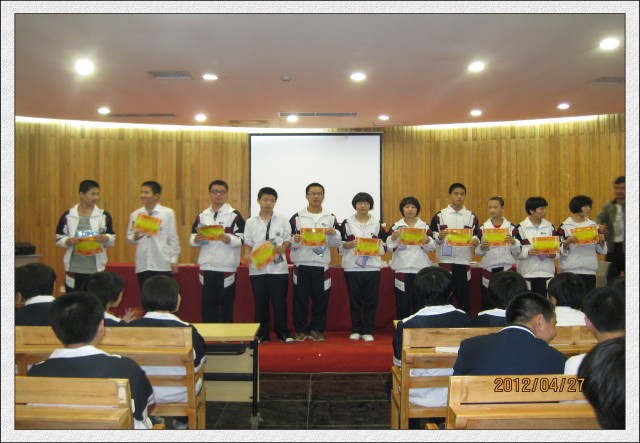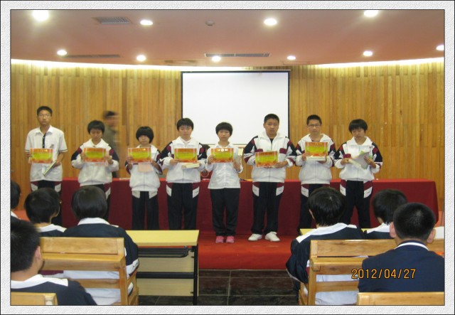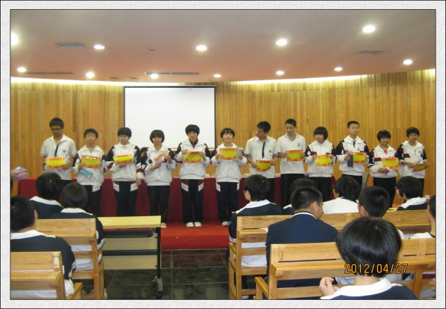 2012年4月27日(星期五)下午第3、4节,初二年全体学生在会议中心一楼隆重热烈召开了半期考表彰会及地理生物中考动员会。