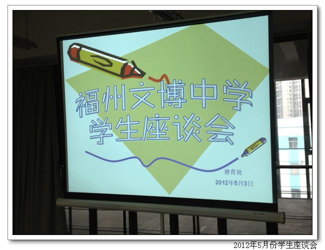 2012年5月2日到5月5日我校德育处召开学生座谈会,了解学生的实际情况,在会上,周副校长、林叔飚主任、吴燕红副主任认真听取了学生代表提出的建议和要求,互相交换了意见,对学生提出的问题都一一作了答复。学生代表们在会上各抒己见,积极发言,对宿舍、食堂、后勤、班级年段等学校工作都提出了宝贵的建议。