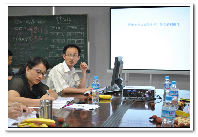 6月15日数学教研组召开了数学教学研讨会——如何激发学生学习的积极性和主动性。会上10位教师分别谈了自己在教学中是如何激发学生学习积极性的。袁泉老师强调要帮助学生树立自信,努力营造宽松愉悦的课堂气氛,教师充满激情,面和心善,使学生感到亲切。李平老师在激发学生学习积极时,提倡合作,参与竞争,最终共同学习、共同进步;鼓励学生归类做错题。邹远勤老师提出在保护学生学习的乐趣时,要控制问题(例题与习题)的难度——特别在低年级阶段,同时要及时赏识激励。张建珍老师在加强学生学习自主性上采用师徒结对子以及激励措施。李建娇老师在知己知彼的情况下,轻松自如的开展教学工作。潘钦老师认为要做一名有魅力的数学教师,要做到有渊博的学识和学科涵养,要有爱心和耐心。林孟泉老师谈了如何做好优生的培养工作。李丽宽老师谈了学生能“听得懂课,不会解题”的原因和对策。许友芳老师强调提高数学课堂教学效率,要做到内容要讲到点子上,时间要用在刀口上。余光亮老师认为要建立一种平等的师生关系,把握机会学会赞美,鼓励质疑,引导学生自主学习。