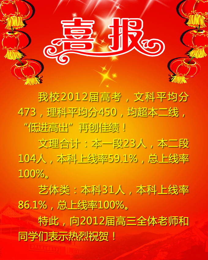 喜报:我校2012届高三毕业班“低进高出”再创佳绩!