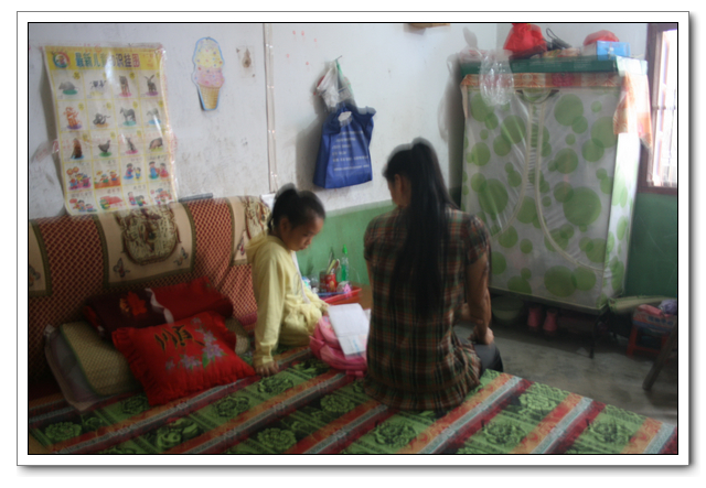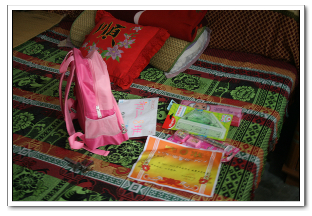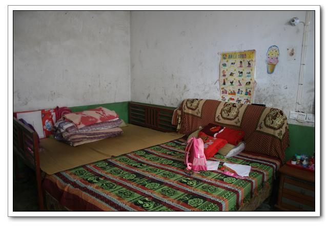 简陋的房屋,简单的家具旁放着一张''优秀少先队员''的奖状。看来小焮的成绩还是挺不错的。
